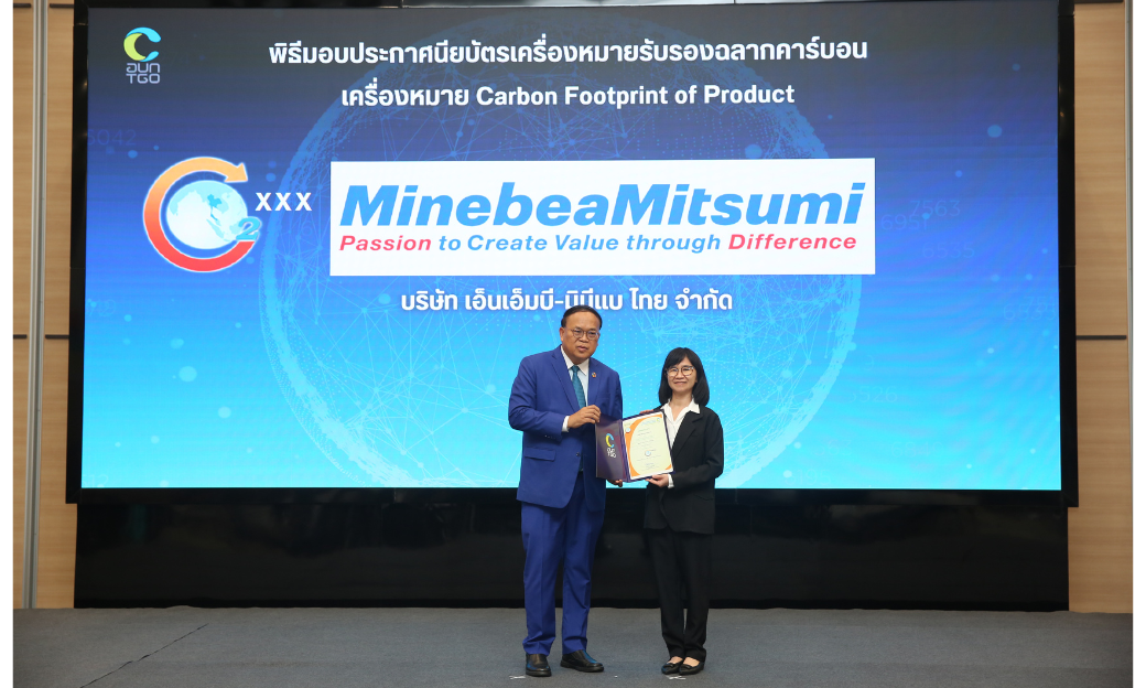 ฝ่าย Ball บริษัท เอ็นเอ็มบี-มินีแบ ไทย จำกัด โรงงานบางปะอิน ได้รับการรับรองฉลากคาร์บอนฟุตพริ้นท์ผลิตภัณฑ์ เมื่อวันที่ 24 มิถุนายน 2568 จาก องค์การบริหารจัดการก๊าซเรือนกระจก (องค์การมหาชน) โดยผลิตภัณฑ์ที่ได้รับรอง คือ Steel Ball 1/16 inch ถือว่าเป็น ผลิตภัณฑ์แรกของบริษัทฯ ที่ผ่านการรับรอง และจัดเป็นต้นแบบในการขยายผลไปยังผลิตภัณฑ์อื่นๆ ของบริษัทในอนาคต ซึ่งนับเป็นก้าวสำคัญของบริษัทฯ ในการยกระดับมาตรฐานการผลิตที่เป็นมิตรต่อสิ่งแวดล้อมและสอดคล้องกับนโนบายของกลุ่มบริษัทฯ