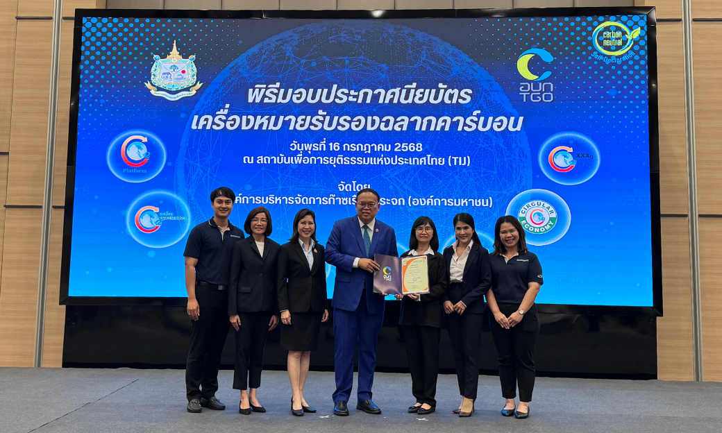 ทั้งนี้ คุณยุวดี วานิชสุขสมบัติ หัวหน้าฝ่าย Ball โรงงานบางปะอิน ได้เข้าร่วมพิธีมอบประกาศนียบัตรเครื่องหมายรับรองฉลากคาร์บอน เมื่อวันที่ 16 กรกฎาคม 2568 ณ ห้อง Conference Hall สถานบันเพื่อการยุติธรรมแห่งประเทศไทย (TIJ) ถนนแจ้งวัฒนะ โดยได้รับมอบกับ ดร.วิจารย์ สิมาฉายา ประธานกรรมการองค์การบริหารจัดการก๊าซเรือนกระจก (องค์การมหาชน)