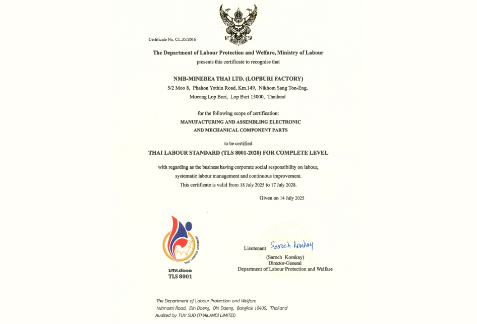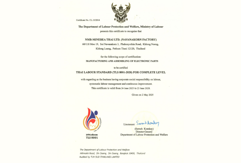 NMB-Minebea Thai Ltd. has consistently placed importance on the continuous care of its employees, recognizing that every employee is a valuable asset in driving productivity, progress, and sustainability for both the company's business and society. Therefore, the company is committed to treating and caring for its employees in alignment with human rights principles, with the aim of enhancing employees’ quality of life.